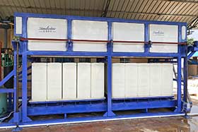 塊冰機也是制冰機中的一種,又稱冰磚機。塊冰機的分類塊冰機分為直冷式集裝箱制冰機、大型直冷塊冰機、小型直冷塊冰機、鹽水式塊冰機。 1、直冷式集裝箱制冰機,將整臺塊冰機放入集裝箱,方便移動運輸。 2、大型直冷塊冰機,產量一般在日產10-30噸,采用分體結構,制冰蒸發器和機組分開,方便運輸和安裝。 3、小型直冷塊冰機